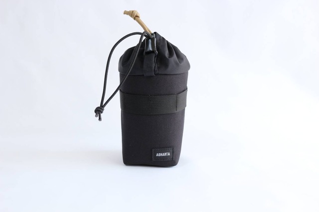 スクエアミニフードポーチ コーデュラ ブラック 自転車のステムとハンドルバーに取り付ける便利なバッグです。 本体にはパッドが入り、スマートフォンやカメラなどを安心して入れられます。 保温、保冷もある程度可能です。 上部の巾着は片手でワンアクションで開け閉め出来ます。 付属のベルクロでハンドルに取り付けるだけでなく、スナップボタンの付いたストラップでWALD等のカゴにも付けられます。 素材 コーデュラナイロン サイズ 高さ140mm 幅75mm 奥行75mm 付属品 取り付け用ベルクロx2 固定用バンジーコードx1
