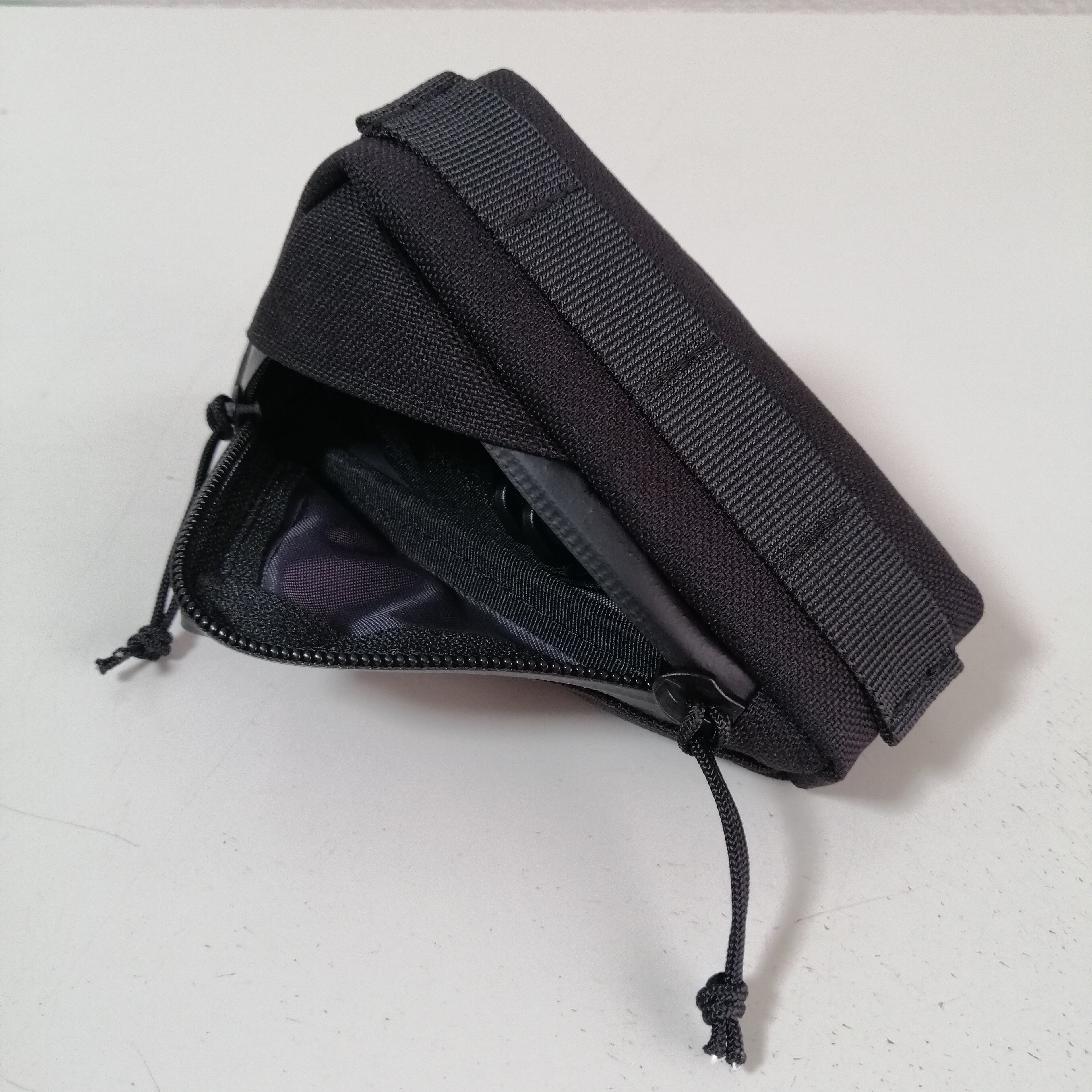 「ここにちょっと入れ物があればなぁ」って場所に、ちょうどよくハマるのがこのフレームバッグ。